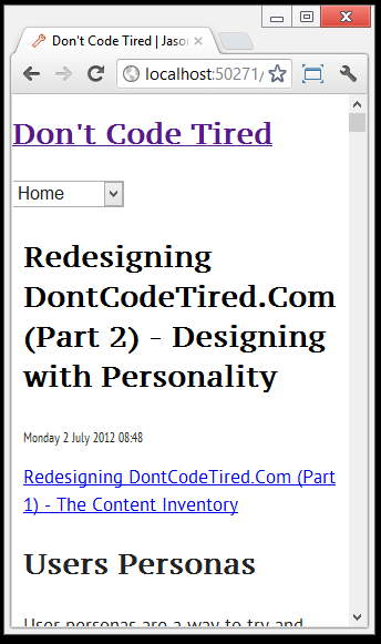 Redesigning DontCodeTired.Com Part 5 - Showing and Hiding Mobile Specific Elements